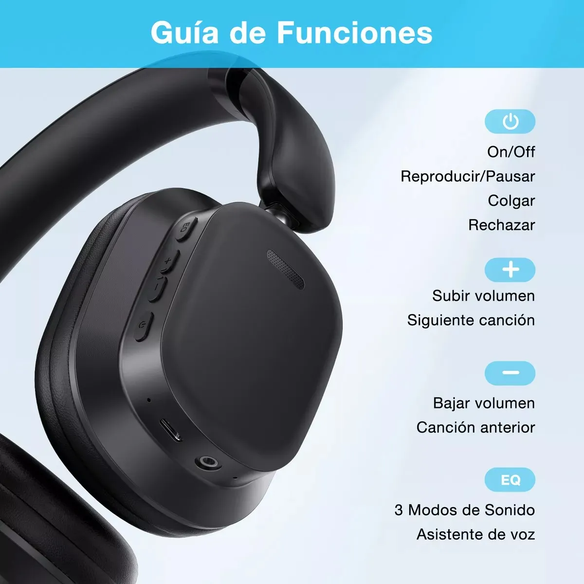 Ofrecen tres modos de ecualización (Vocal, Bajo y Pop) para ajustar el perfil de sonido según tus preferencias, junto con drivers de 40 mm. La marca indica una autonomía aproximada de hasta 100 horas de reproducción (puede variar según volumen y contenido), y el manual especifica un tiempo de carga aproximado de 3 horas mediante puerto USB‑C.