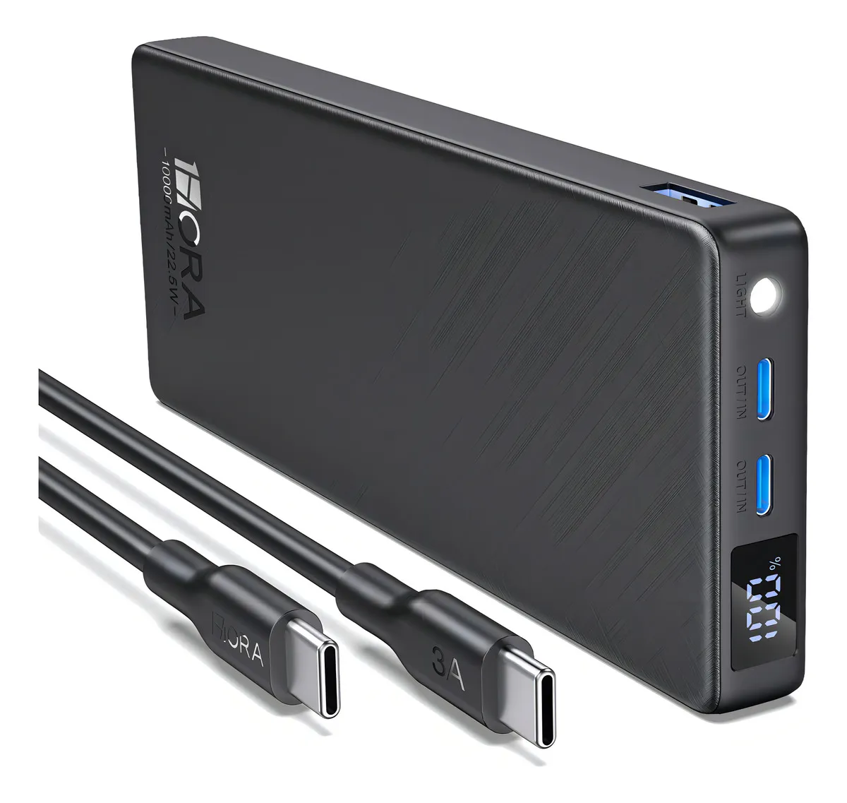 El diseño incluye una pantalla/indicador LED que permite ver el nivel de batería de forma clara, lo que ayuda a planificar cuándo recargar el powerbank. También integra una linterna (flashlight) para uso en situaciones de baja luz o emergencias, aportando una función extra además de la carga. En conjunto, es una opción práctica para quienes buscan un powerbank compacto de 10.000 mAh con carga rápida y control visual del nivel de energía.