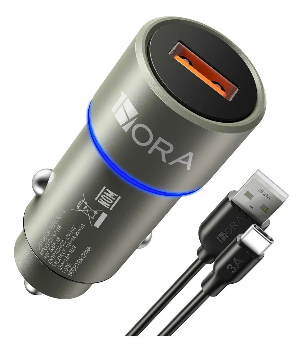 Cargador para carro 1HORA en color gris, diseñado para alimentar y recargar tus dispositivos mientras conduces. Se conecta al puerto de 12V del vehículo (encendedor/toma de accesorios) y ofrece salida USB para que puedas cargar celulares, audífonos, parlantes u otros accesorios compatibles con carga por USB. Su corriente de carga de 3A está pensada para brindar una carga más eficiente que cargadores básicos, ideal para uso diario en trayectos, viajes o trabajo en carretera. Es una opción práctica para mantener tus equipos con batería sin depender de tomas de corriente.