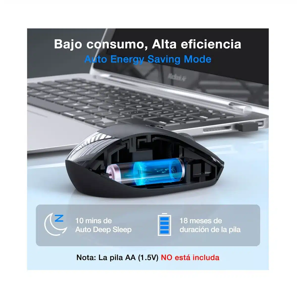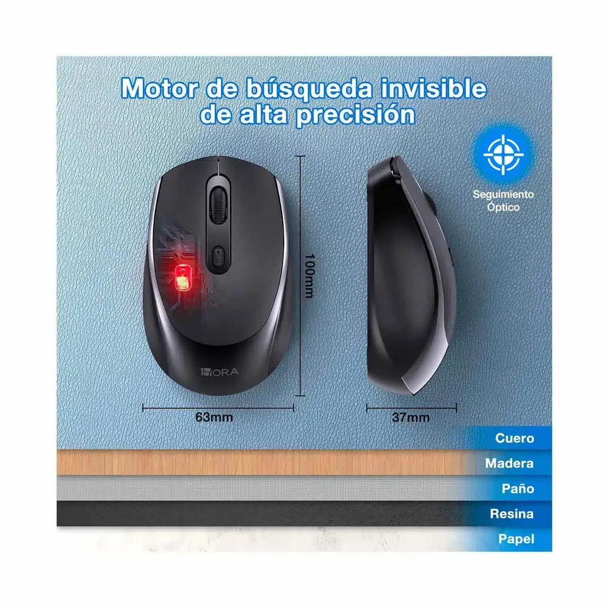 El Ratón Inalámbrico 1Hora RAT001 ofrece una conexión estable de 2.4GHz con un alcance de hasta 10 metros, ideal para oficina y uso diario.