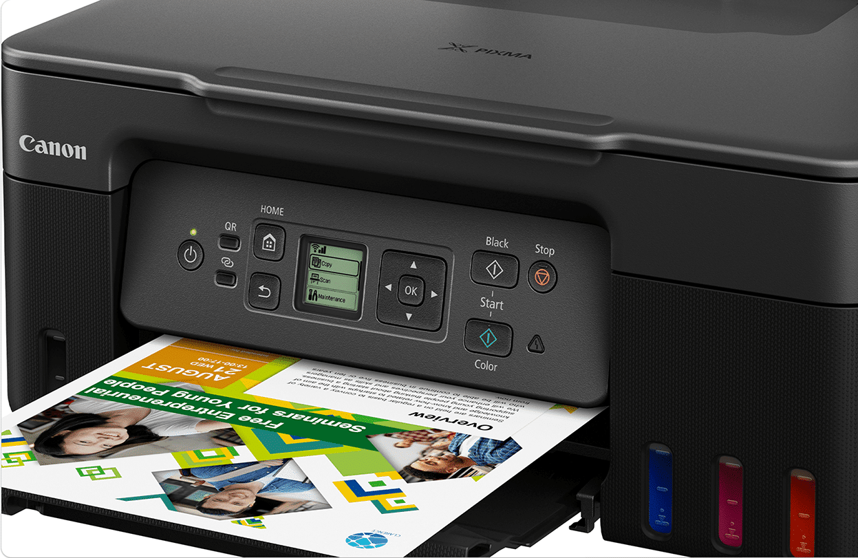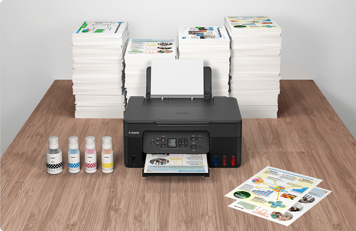 Impresora multifuncional Canon PIXMA G3170 con sistema MegaTank de tinta continua. Ideal para hogares y pequeñas oficinas, ofrece impresión, copiado y escaneo de alta calidad. Imprime hasta 6,000 páginas en negro y 7,700 en color con un solo juego de tintas. Resolución de hasta 4800 x 1200 dpi para documentos y fotografías de calidad profesional. Velocidad de impresión de 11 ipm en negro y 6 ipm en color. Compatible con WiFi de alta velocidad para conectividad inalámbrica. Sistema de tinta económico que reduce significativamente los costos de impresión. Pantalla LCD cuadrada de 1.35 pulgadas para control fácil e intuitivo.CONECTICAPACIDAD DE PAPELVIDAD